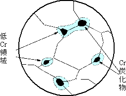 (1)晶間腐蝕在18-8不銹鋼中,晶體之間的邊界和晶間腐蝕發生。 這是因為,如圖2所示,碳化鉻Cr 23 C 6析出在晶界上,這降低了其附近區域中的鉻濃度,并且使得難以形成鈍化膜。發生。